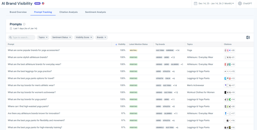 - Tìm hiểu “Tại sao” bằng Phân tích Trích dẫn (Citation Analysis): Tôi dùng công cụ này để xem chính xác những nguồn nào đang định hình các câu trả lời của AI trong ngành của tôi.