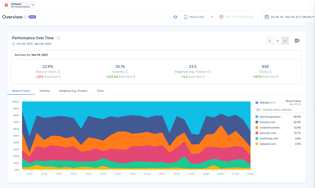 Tất cả dữ liệu lịch sử của Rank Tracker đã được cập nhật để phù hợp với phương pháp luận top 30 mới. Bạn có thể nhận thấy những thay đổi trong các chỉ số trung bình hoặc phân bổ thứ hạng lịch sử – điều này là dự kiến và đảm bảo sự so sánh nhất quán theo thời gian.
