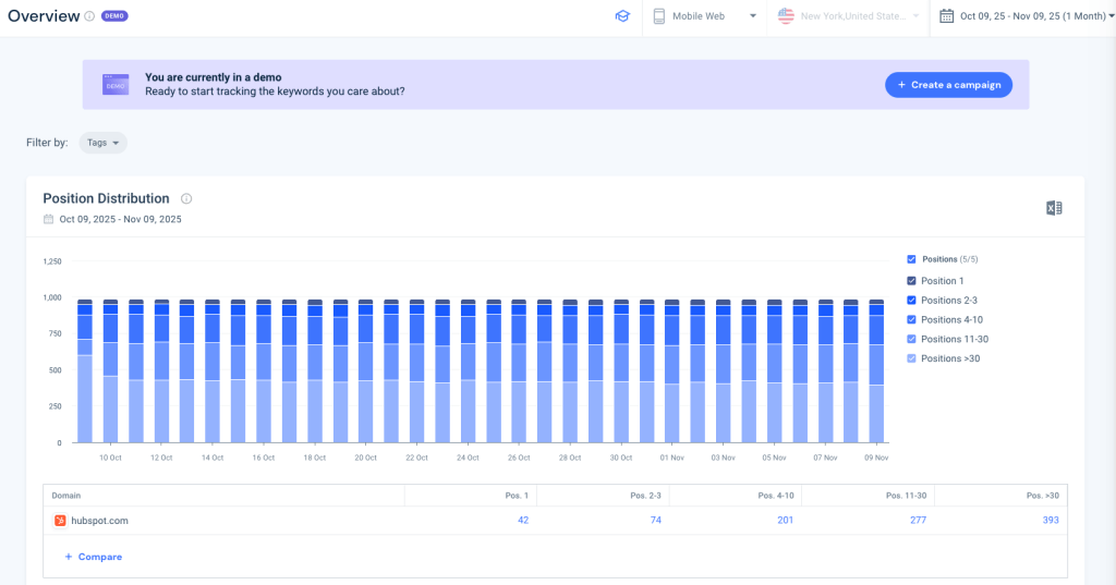 Ngoài top 30, các thứ hạng đóng góp rất ít lưu lượng truy cập và biến động thường xuyên. Bằng cách tập trung vào phạm vi này, Rank Tracker đảm bảo dữ liệu của bạn phản ánh hiệu suất thực tế, các xu hướng đáng tin cậy và những insight có thể hành động.