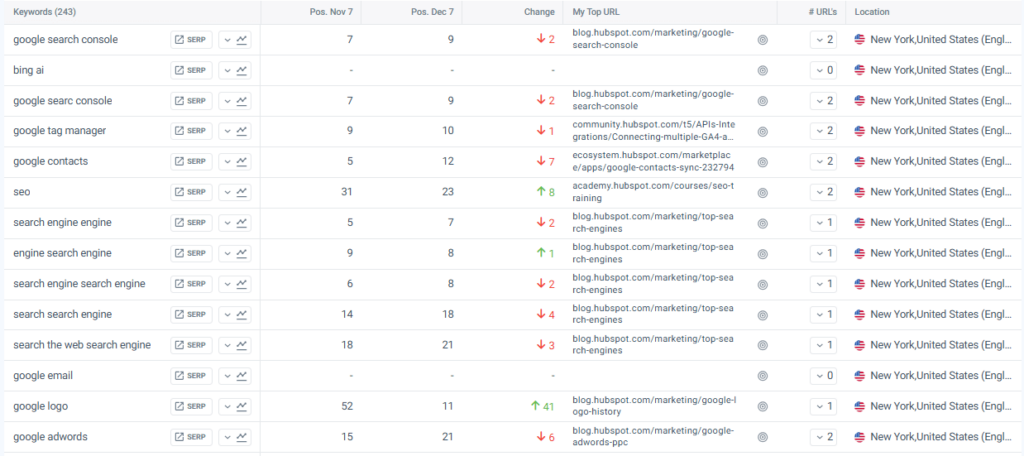 - Xem xét danh sách các từ khóa xếp hạng.