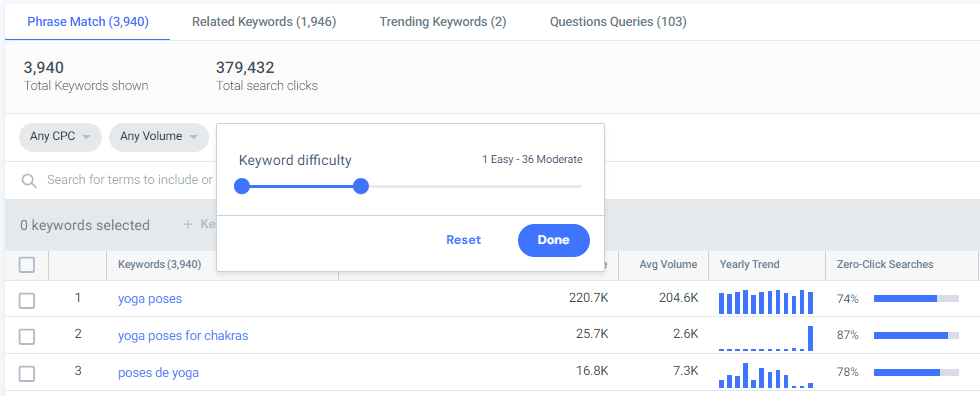- Tìm tất cả các từ khóa trong chủ đề của bạn bằng cách nhập một từ khóa hạt giống vào công cụ tạo từ khóa của bạn.