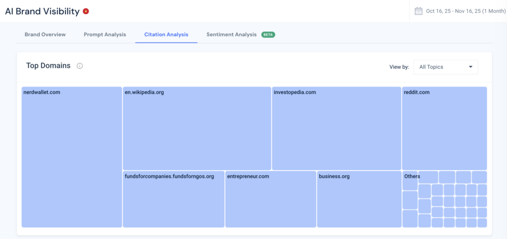 Bạn có thể sử dụng các nền tảng như AI Brand Visibility của Similarweb để theo dõi khi nào và ở đâu thương hiệu của bạn xuất hiện trong các câu trả lời do AI tạo ra.