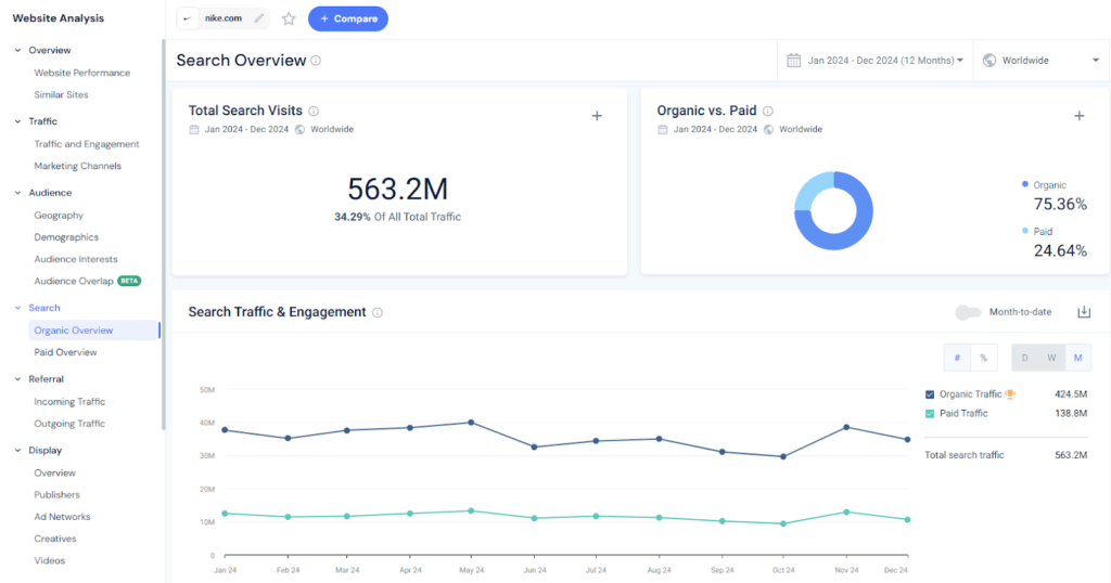 Phân tích traffic website đa ngôn ngữ giúp tạo ra các chiến lược tương tác hiệu quả. Nó cho phép các doanh nghiệp đáp ứng các nhu cầu khác nhau của người dùng trên toàn cầu. Đây là lúc Similarweb chứng tỏ giá trị vô giá, với các tính năng và công cụ để phân tích lưu lượng truy cập toàn cầu, từ kiểm tra SEO đến phân tích đối thủ cạnh tranh trên thị trường.