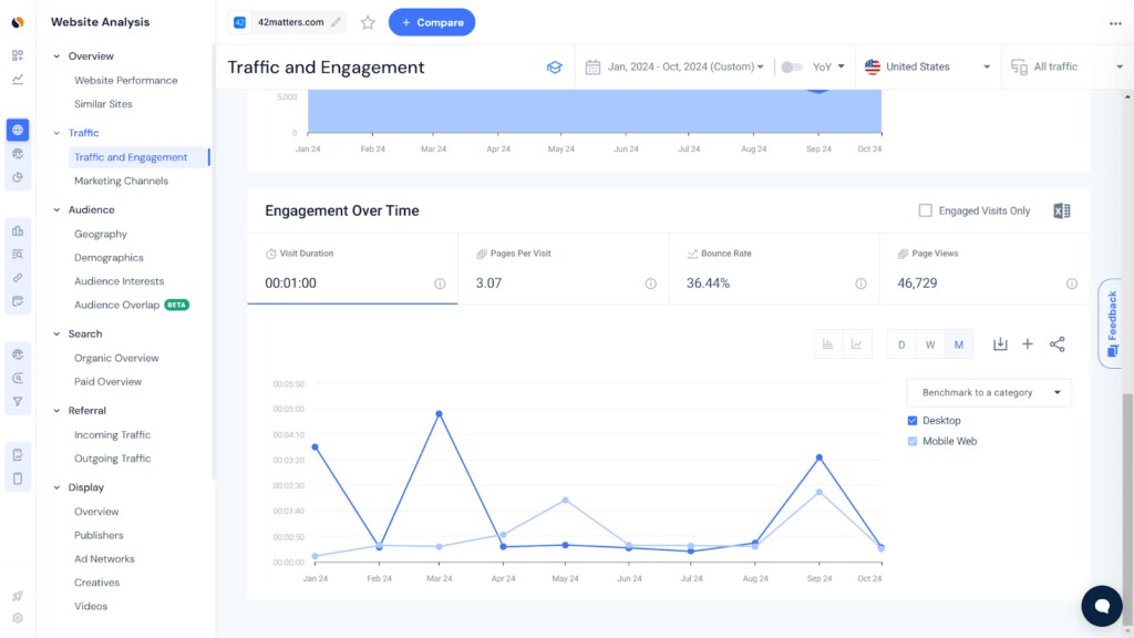 Việc theo dõi các mô hình traffic là rất quan trọng. Sự tăng giảm đột biến có thể báo hiệu xu hướng thị trường hoặc thị hiếu mới của khán giả. Một bản cập nhật ngôn ngữ thúc đẩy sự tương tác có thể đại diện cho tiềm năng tăng trưởng, trong khi sự sụt giảm đột ngột có thể phản ánh nội dung cũ cần được làm mới.