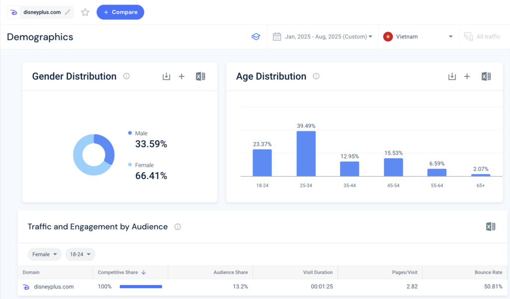 Các công cụ như website demographics của Similarweb cung cấp cho bạn insight về nhân khẩu học và sở thích của khán giả.