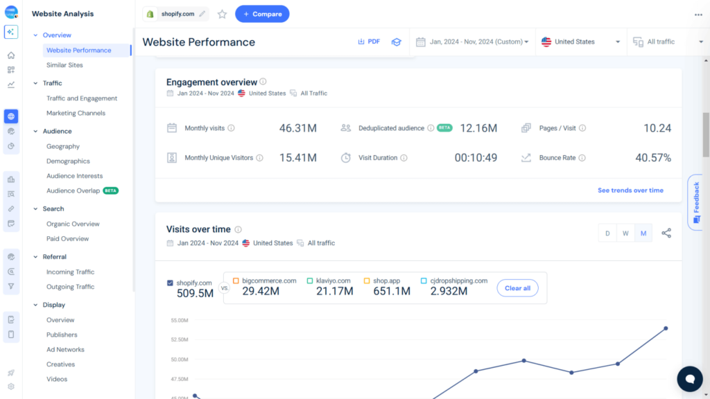 Những con số có thể làm cho câu chuyện của bạn trở nên thuyết phục hơn. Storytelling dựa trên dữ liệu giúp tăng thêm độ tin cậy và giúp mọi người nhìn thấy bức tranh toàn cảnh hơn. Ví dụ, công cụ Phân tích Website của Similarweb có thể cho thấy các xu hướng thị trường và hành vi của khách hàng.