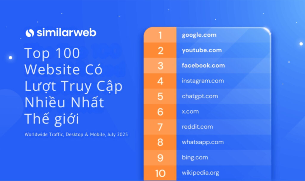 Top 100 Website Thế Giới Có Lượt Truy Cập Nhiều Nhất (7/2025)